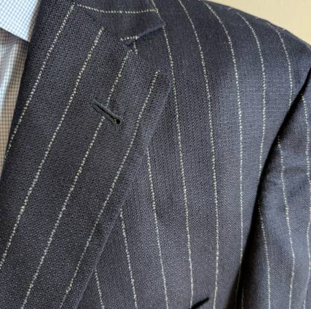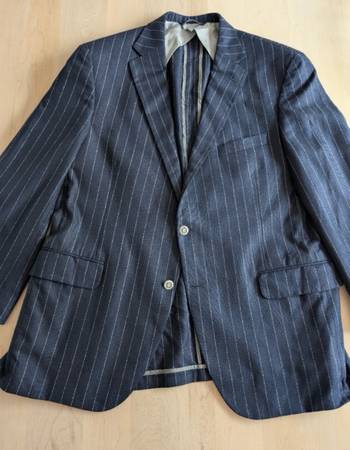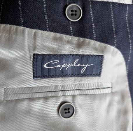 Brand: Coppley 🇨🇦 Style: blazer / sports jacket Colour: navy pinstripe Fabric: 100% silk Condition: mint Please see my other listings.