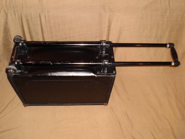 Stradellina Black Leather Rolling Attache Case, legal size 18 x 8 x 13 inches, wheeled with extendible handle excellent overall condition $150