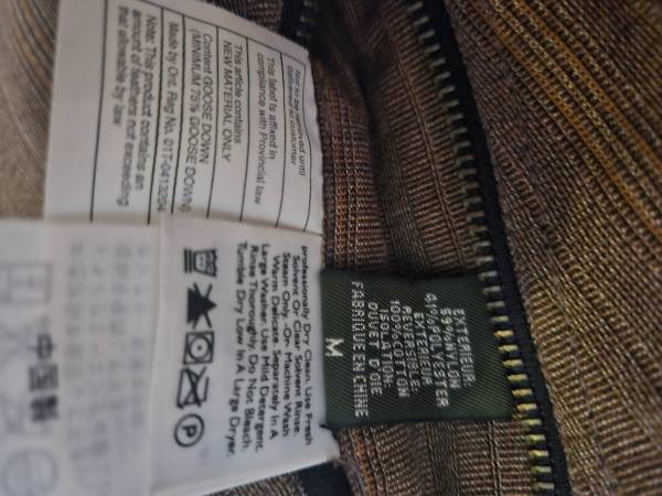 Men's Goose Down Reversible Sleeveless Jacket, Size M. Very comfortable and warm. Hardly worn, excellent condition, no tears, holes, etc.
