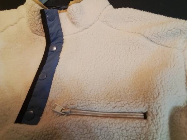 This is a new Only & Sons sherpa sweater in size XXL, perfect for staying warm and stylish. The sweater features a unique half-snap design and is made from a soft, high-quality sherpa material. The original tag is still attached.