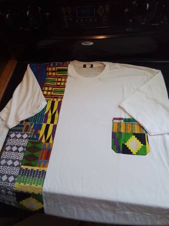 Prodigie Clothing Shirt 3XL New This is a used Prodigie Clothing shirt featuring a unique Kente-inspired design. The shirt is size 3XL and made from 60% cotton and 40% polyester. This eye-catching...