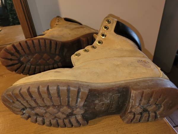 Timberland classic boots, sand color. Size mens 8 (wide fit). These are the iconic Timberland Boots that made the brand famous.