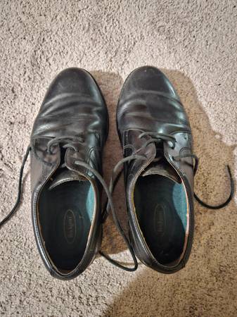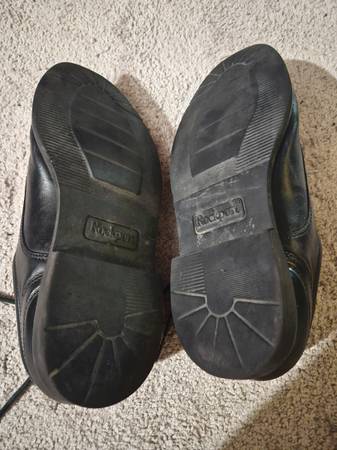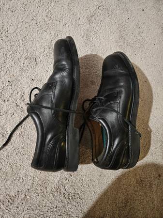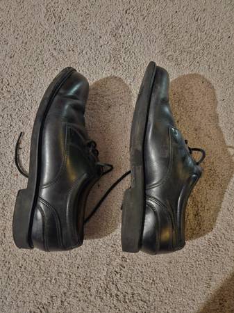 Men's Rockport Leather Dress Shoes, Black, Size 9.5 or 10. These shoes were sparesely used and are in very good condition, no holes, tears, etc., soles have minimal wear.