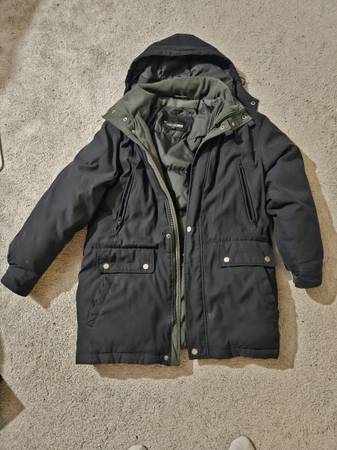 Weatherman Winter Jacket, Adult Small 34-36. Very comfortable and warm, perfect for a cold winter. 2 inner pockets and 4 outer pockets (2 zippered, 2 buttoned). Sparsely worn, excellent condition. The only issue is the zipper gets stuck sometimes, might need a repair (can probably get it done for $5 at some tailors, $10 max, already factored into the price). The info regarding materials is not fully clear as the label is somewhat faded (see photo #4), however you can see that the lining is 100% Nylon and the shell is 85% Polyester. Paid about $200 new.