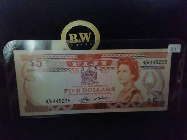 The Fiji 5 dollars banknote is a colorful, vibrant currency note issued by the Reserve Bank of Fiji. Featuring native Fijian motifs, plants, and cultural elements, it highlights Fiji’s heritage and natural beauty. The front of the note traditionally showcases a portrait of Queen Elizabeth II, symbolizing Fiji's historical ties to the British Commonwealth, along with Fijian emblems. The reverse side often displays images of Fijian wildlife, such as the endemic Kacau bird or vibrant coastal scenes, celebrating Fiji’s rich biodiversity and marine life. Printed in shades of green, the 5-dollar note is widely used and valued for its visually appealing design that embodies the spirit of Fiji.