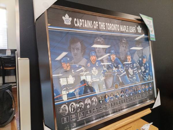 This is a framed print that showcases the Captains of the Toronto Maple Leafs. The print features images of various team captains throughout the history of the Toronto Maple Leafs. Perfect for any Leafs fan looking to add a piece of memorabilia to their collection!