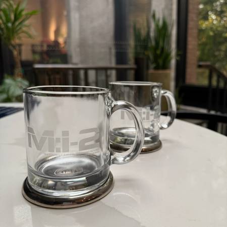 The mug is glass and made in USA. It features the "M:i-2" logo.