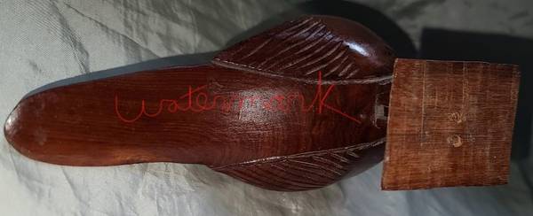 The carving possibly depicts a Green Heron, a water bird found in North America, & elsewhere.