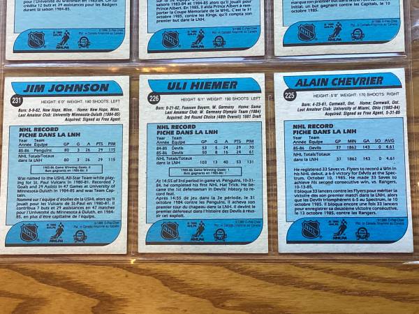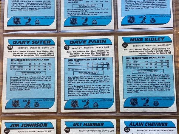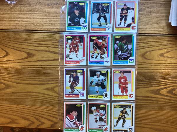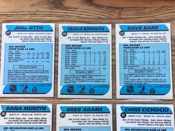 $25.00 CANADIAN for all 12 cards - CHRIS CICHOCKI #41, DANA MURZYN #58, MIKE RIDLEY #66, DAVE PASIN #76, GARY SUTER #189, ALAIN CHEVRIER #225, ULI HIEMER #226, JIM JOHNSON#231, DAVE BARR #237, CHARLIE BOURGEOIS #239, JOEL OTTO #247, GREG ADAMS #253 - #247 JOEL OTTO is an ERROR CARD, NOT OTTO PICTURE - Shipping available - Located at Pape ave & Cosburn Ave Toronto - Call Patrick @ show contact info