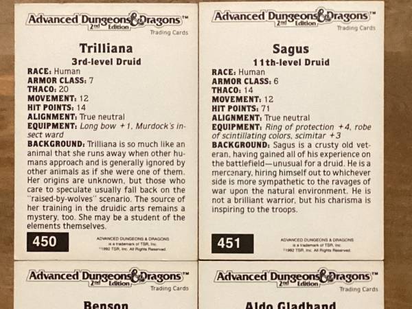 $10.00 CANADIAN for all 4 cards - 2nd. edition - Trilliana, Sagus, Benson, Aldo Gladhand - Shipping available - Located at Pape ave & Cosburn Ave Toronto - Call Patrick @ . - Thanks & check...