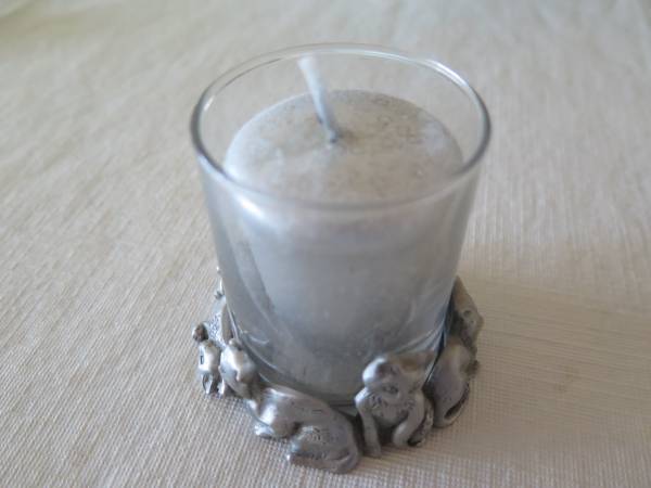 A circle of cats, Seagull Canada, Etain Zinn dated 1992. Includes glass holder and silver-toned candle - $20