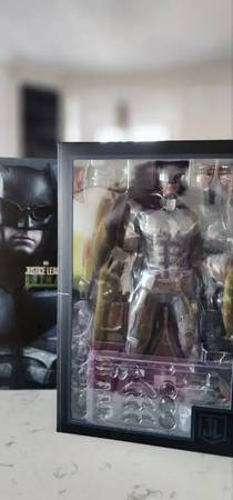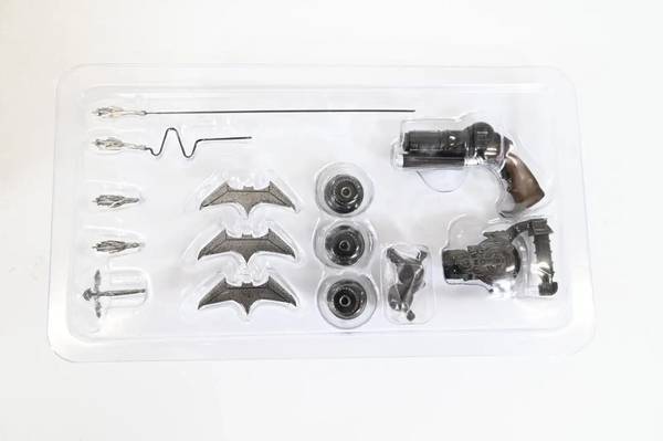 Extras: Includes Batarangs, grapple guns, Human Mother Box, and display stand