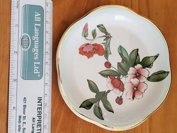 Lovely little dish - Palissy, by Royal Worcester Spode, in the Royale floral pattern. The small plate is in the original box and measures 4.75" across its widest point (12cm). $5.00, pick up only