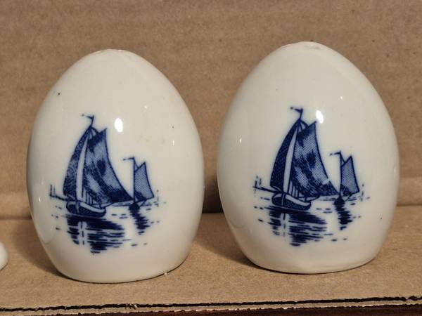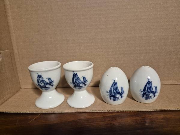 Vintage Blue & White - Egg Cups, Salt & Pepper Shakers -...