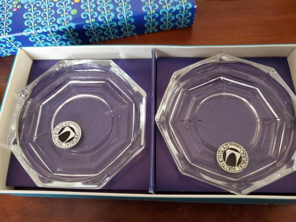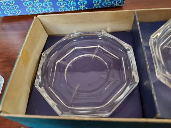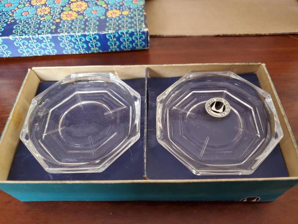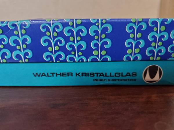 A set of 6 vintage glass coasters. Marked "West Germany", they're made by Walther Kristallglas. No chips or cracks, in the original box. $10.00, pick up only