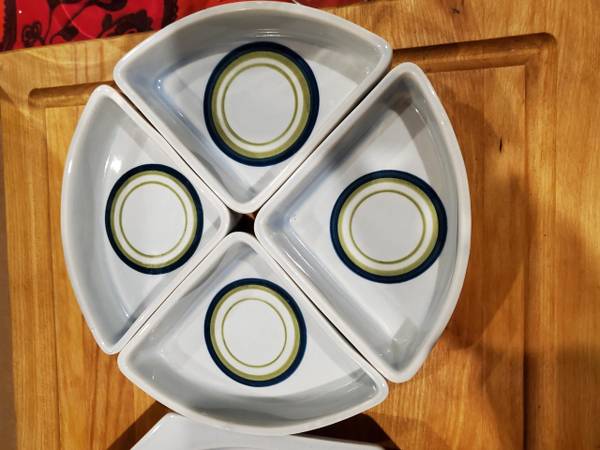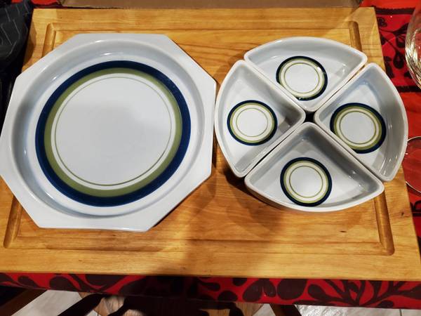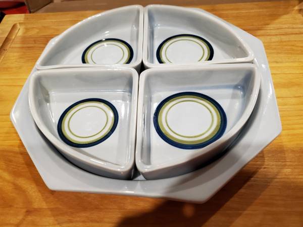 Lovely vintage serving platter with a plate and four separate dishes. Made in Israel, it's stoneware made by Lapid, the dish is about 10.5" x 10.5". Small chip in glaze, hard to see but on top of...