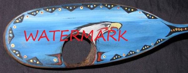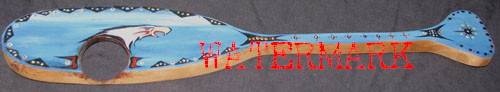 ORIGINAL ONTARIO INDIGENOUS / ABORIGINAL HAND PAINTED OAR / PADDLE depicting a BALD EAGLE by Randall 'Randy' James Knott (1955-), on verso it's SIGNED, & DATED, 1992, 18.9" x 3 1/8".