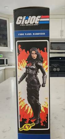 This awesome Baroness figure from G.I. Joe is a must-have for fans and collectors. Made by Sideshow Collectibles, it shows the COBRA spy in her iconic black bodysuit with amazing detail. Standing about 12 inches tall, this 1/6 scale figure is posable with a detailed sculpt, vibrant paint, and cool accessories like guns and extra hands.