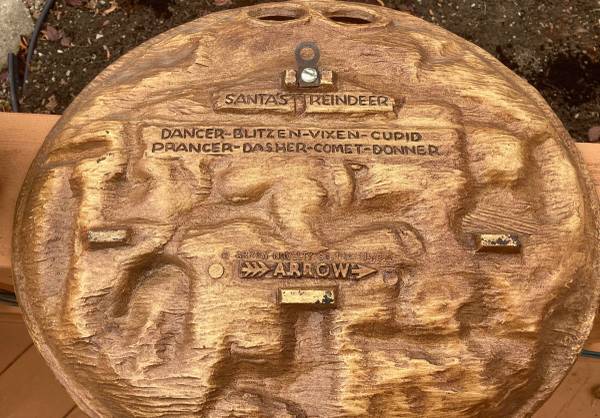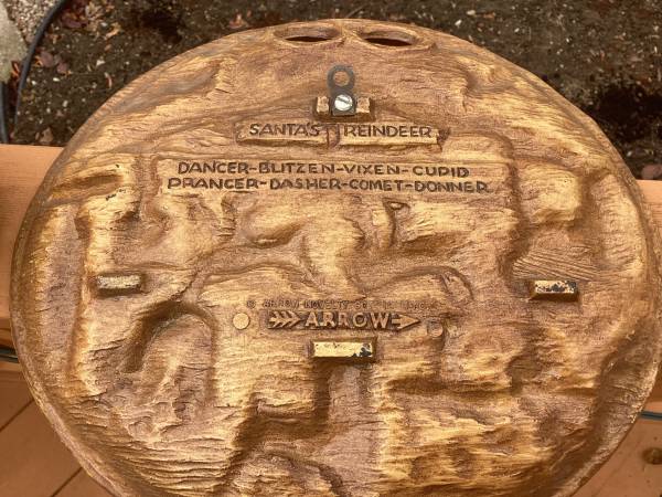 OLDER CHRISTMAS PLAQUE ,PRESSED WOOD ,DATING 1940s . MADE BY THE ARROW NOVELTY COMPANY ,NEW YORK.