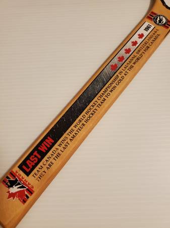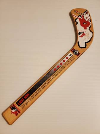 *** Team Canada Hockey Wood Mini-Stick *** From Hockey Hall of Fame in Toronto. Commemorating the 1961 World Championship in Switzerland. About 12" Long Thanks for Looking!
