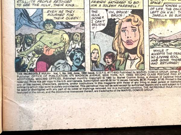 THE INCREDIBLE HULK #248 June 1980 Marvel Comic. Approx. 5.0 Raw Grade