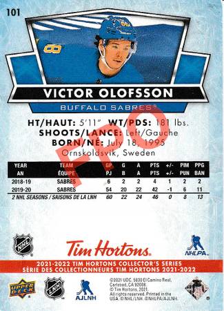 101: Victor Olofsson β Left Wing β Buffalo Sabres