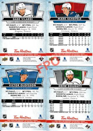 Looking for an exclusive addition to your hockey card collection? π Iβm selling four (4) of my 2021-22 Upper Deck Tim Hortons NHL Trading Cards from the Base Set collection:
