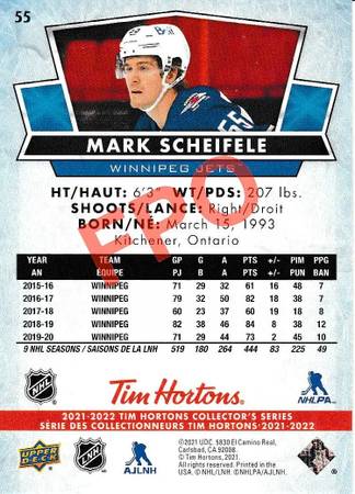 55: Mark Scheifele β Center β Winnipeg Jets