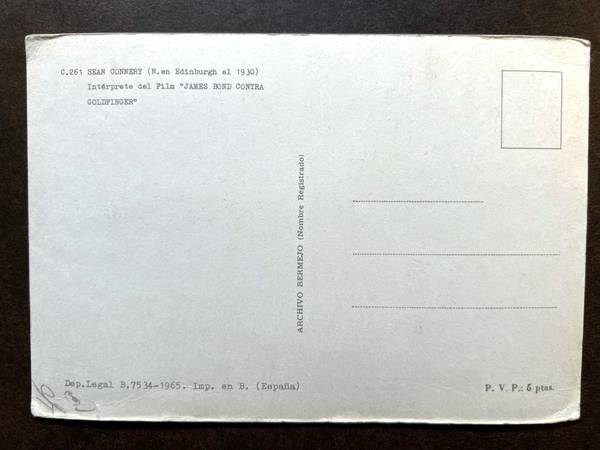 Vintage SEAN CONNERY 1965 Spanish Postcard promoting GOLDFINGER See other items. Google M4E3V3 for location