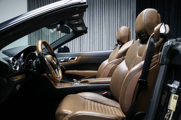 SL 550 Roadster, Amazing Magnetite Black Metallic Exterior on Brown Premium Leather Interior with Burl Walnut Interior Trim, AIRSCARF Neck and Shoulder Heating for Top Down Driving on Chilly Days, Keyless-Go, Electronic Trunk Closer, Heated/Ventilated/Power/Massaging/Memory Leather Seats, Sport Steering Wheel with Aluminum Shift Paddles, Harman Kardon Premium Audio System, Navigation, Power Operated Hardtop Convertible Roof, Dual Zone Automatic Climate Control, Auto Dimming Rearview Mirrors, and so many more options to list. A Must See.