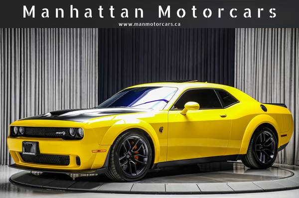 Challenger SRT Hellcat Widebody, Amazing Yellow Jacket Exterior on Black Laguna Leather Interior, Heated/Ventilated/Memory/Power Laguna Leather Bucket Seats, Leather Wrapped Steering Wheel, SRT Spoiler, Widebody Fender Flares, Widebody Competition Suspension, Blind Spot Monitoring with Rear Cross Path Detection, 18 Speaker Premium Harman Kardon Audio System with Surround Sound, Power Tilt and Sliding Sunroof, GPS Navigation, Park View Reverse Camera, Park Sense Rear Park Assist System, Remote Proximity Keyless Entry, Push Button Start, Active Exhaust, SRT Performance Pages, Line Lock Launch Control, After Run Cooling System, Launch Assist, Apple Carplay, Android Auto, Dual Zone Automatic Climate Control, Remote Engine Start, Rain Sensing Windshield Wipers, and so many more options to list. A Must See.
