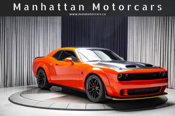 Challenger SRT Hellcat Widebody Redeye, Amazing Go Mango Exterior on Black Nappa Leather Interior, SRT Power Chiller, Heated/Ventilated/Memory/Power Nappa Leather and Suede Bucket Seats, Alcantara Wrapped Steering Wheel, SRT Barracuda Spoiler, Widebody Fender Flares, Widebody Competition Suspension, Blind Spot Monitoring with Rear Cross Path Detection, 18 Speaker Premium Harman Kardon Audio System with Surround Sound, GPS Navigation, Park View Reverse Camera, Park Sense Rear Park Assist System, Remote Proximity Keyless Entry, Push Button Start, Active Exhaust, SRT Performance Pages, Line Lock Launch Control, After Run Cooling System, Launch Assist, Apple Carplay, Android Auto, Dual Zone Automatic Climate Control, Remote Engine Start, Rain Sensing Windshield Wipers, and so many more options to list. A Must See.