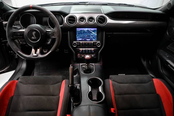 Mustang Shelby GT 350R, Amazing Magnetic Metallic with Kona Blue with Red Borders Over-The-Top Racing Stripe Exterior on RECARO® Sport Ebony Carbon Weave Cloth Seats with Miko® Sueded Cloth Insert and Red Accent Stitching, Exposed Carbon Fiber Interior Trim, Unique Front Air Splitter, Carbon Fiber Rear Wing, Rear Seat Delete, SYNC 3 Voice Activated Navigation System, Dual Zone Automatic Climate Control, Blind Spot Monitoring, Cross Traffic Alert, Remote Keyless Entry System, Rear View Camera System, Configurable Steering Feel, Track Apps, Electronic Line Lock, Launch Control, Alcantara and Leather Wrapped Flat Bottom Steering Wheel, Front Splitter, Side Skirts, and Rear Diffuser, Power Windows, Aluminum Strut Tower Brace, and so many more options to list. A Must See.
