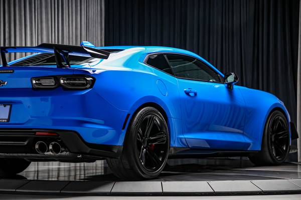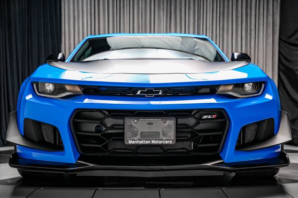 Camaro ZL1 1 LE Coupe, Amazing Rapid Blue Exterior on Jet Black Suede/Leather Interior with Red Stitching, Performance Suspension, Red Brake Calipers, Satin Black Hood Wrap, Exposed Carbon Fiber Weave Hood Insert, Exposed Carbon Fibre Rear Spoiler, Unique Front Splitter, Suede Flat Bottom Steering Wheel, Heated Steering Wheel, 2 Door, Recaro High Performance Bucket Seats, Cooled/Heated/Power/Memory/Leather/Suede Bucket Seats, Dual Zone Automatic Climate Control, HD Back Up Camera, Rear Park Assist, Heads Up Display, Blind Spot Assist, Ambient Lighting, Apple Car-Play, Android Auto, Wireless Charging, Magnetic Ride Control Suspension (Adaptive Suspension), Brembo Brakes, Teen Driver Mode, Key-Less Entry, Bose Premium 9-Speaker Sound System, Performance Dual Mode Exhaust, Rear Cross Traffic Alert and many more options to list, looks and runs like new, A Must See.