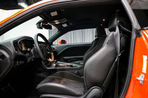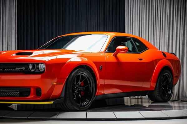 Challenger SRT Hellcat Redeye Widebody, Amazing Go Mango Exterior on Black Nappa Leather Interior with Dark Engine Turn Interior Accents, Heated/Ventilated/Memory/Power Nappa Leather Bucket Seats, Widebody Fender Flares, Widebody Competition Suspension, SRT Power Chiller, Black Exterior Badging, Automatic High Beam Headlamp Control, Blind Spot Monitoring with Rear Cross Path Detection, 18 Speaker Premium Harman Kardon Audio System with Surround Sound, GPS Navigation, Park View Reverse Camera, Park Sense Rear Park Assist System, Remote Proximity Keyless Entry, Push Button Start, Active Exhaust, SRT Performance Pages, Line Lock Launch Control, After Run Cooling System, Launch Assist, Apple Carplay, Android Auto, Dual Zone Automatic Climate Control, Remote Engine Start, and so many more options to list. A Must See.