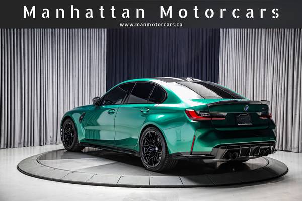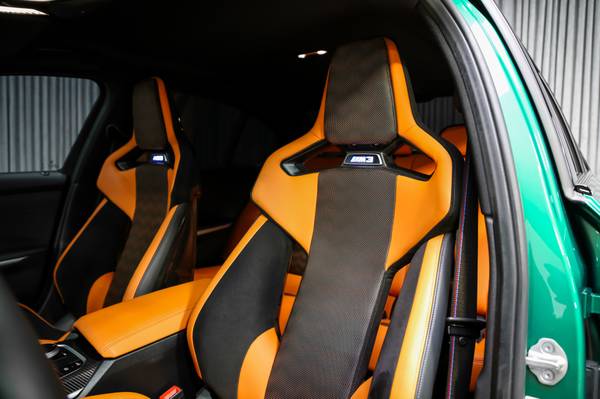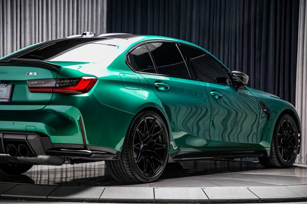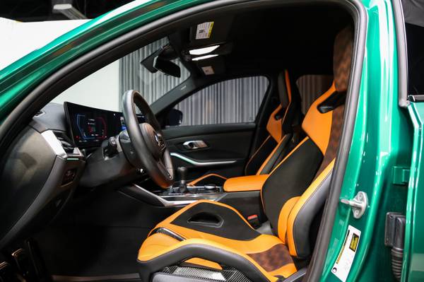 M3 Sedan, Amazing Isle of Man Green Exterior on Kyalami Orange Merino Leather Interior with Carbon Fiber Trim and Chrome Highlight, M Carbon Fiber Bucket Seats, BMW Carbon Fiber Front Bumper Splitter Inserts, BMW Carbon Fiber Mirrors, BMW Carbon Fiber Trunk Spoiler, BMW Carbon Fiber Rear Diffuser, M Drive Pro, BMW Laser Headlights, BMW Drive Recorder, Digital Cockpit Professional with Heads Up Display & Video AR Navigation, Harman/Kardon Surround Sound System, Parking Assistant Plus incl. Surround View, Apple Carplay, Android Auto, Park Distance Control, Adaptive Full LED Laser Lights, Automatic High Beams, Cruise Control with Brake Function, Heated Steering Wheel, Heated/Power/Memory Leather Seats, Comfort Access, Anthracite Headliner, Retractable Headlight Washers, Power Folding Mirrors, M Seat Belts, Gloss Black Kidney Grilles, and so many more options to list. A Must See.