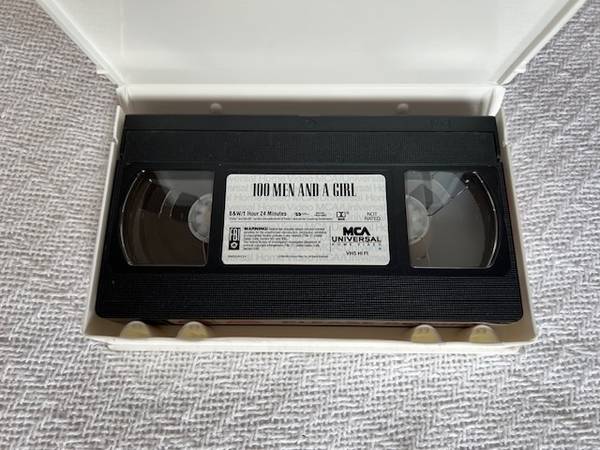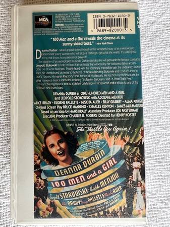 100 Man and a Girl (1937) starring Deanna Durbin and Leopold Stokowski. Check out the price for this on Amazon. NTSC VHS I purchased this on ebay many years ago. It looks to be a Sante Fe video...