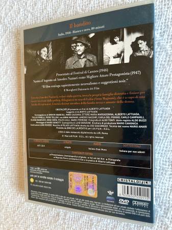 Il Bandito (1946) PAL Reg 2 Italian DVD with Anna Magnani & Amedeo Nazzari. NO Subtitles. The Bandit is the U.S. title. Directed by Alberto Lattuada. Cristaldfilm Edition. DVD was viewed just...