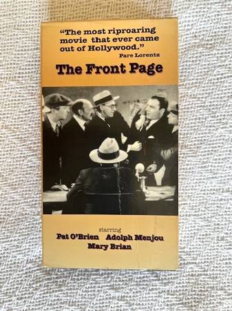 Rare vhs copy of the 1931 Lewis Milestone film, The Front Page (1931). Produced by Howard Hughes and starring Pat O'Brien, Adolphe Menjou and Mary Brian. From the Ben Hecht, Charles MacArthur play. Nominated for 3 Oscars: Best Picture, Actor and Director.
