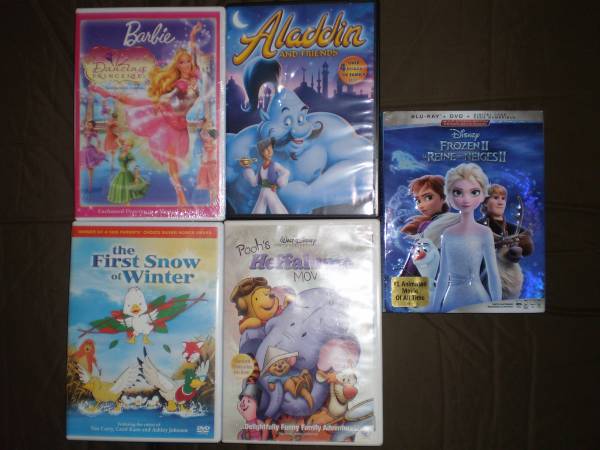 Aladdin And Friends [DVD] Barbie in the 12 Dancing Princesses, NEW and SEALED Disney FROZEN 2 BLU-RAY AND DVD, 2 DISCs Disney Pooh's Heffalump Movie The First Snow Of Winter [DVD] 1 for $5 or ALL...