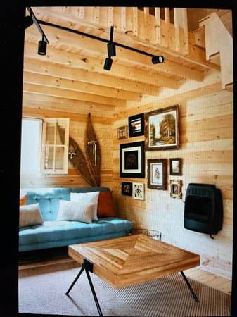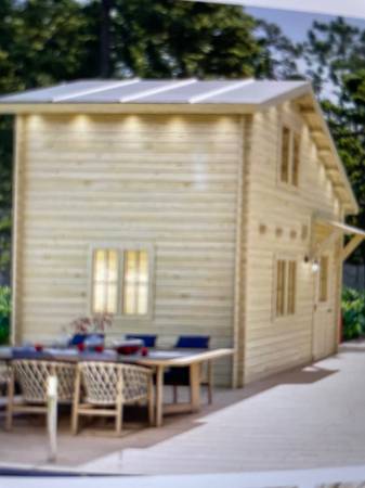 TINY HOME FOR SALE: Blue Water Loft 160 – Premium 38mm Spruce Log Cabin