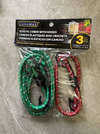 Selling a pack of Duramax elastic cords with hooks. They come in a pack of 3, with red and green cords.
