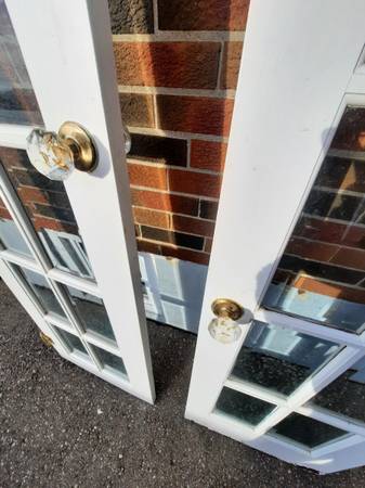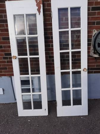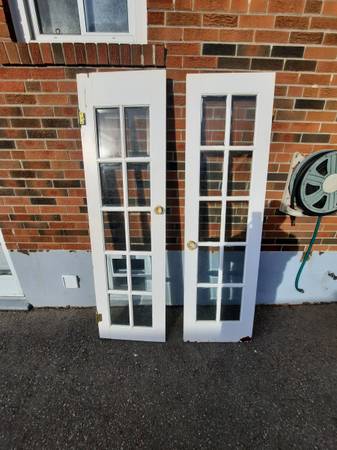 One is 22 5/8" wide, one is 23" wide Both 80" height. Will need to be repainted or paint stripped if you wanted natural wood. $50 for both, includes handles and hinges. Kennedy and St.Clair area in...