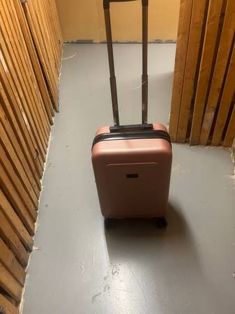 Bugatti Milano 20” hard shell carry-on suitcase. Rose gold colour. 360-degree spinner wheels. Telescopic trolley handle. Lined interior. Zipper release expansion system for 20% more space. Like new...