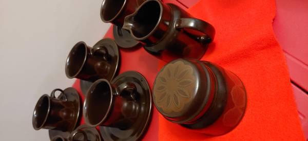 6 set of elegant coffee mugs + saucers in rich warm brown