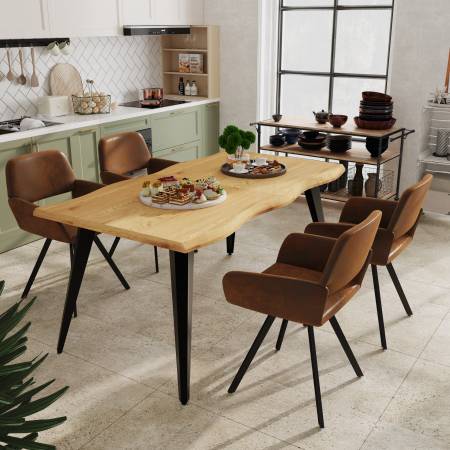 This 5-piece set offers warm style and everyday comfort. Oak-veneer tabletop, sturdy steel legs, and four padded chairs with 360° rotation fit beautifully in apartments or family homes. Easy to assemble and built to last.