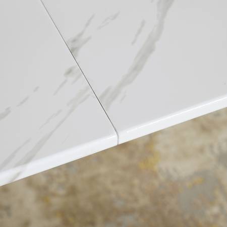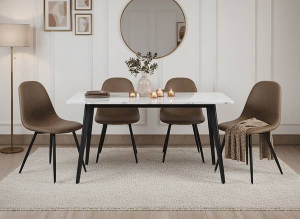 Modern white marble-look dining table with upholstered chairs, perfect for condos across the Toronto GTA. Pickup available in Richmond Hill. Designed by Homy Casa Canada for modern homes and small spaces.