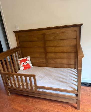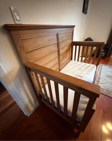 good condition baby crib with waterproof mattress . Front guard can be half or full. In different Ages Mattress Can Move higher level or lower level . We accept cash only. And please only text