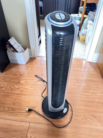 Stay cool this summer with this Bionaire tower fan! This oscillating tower fan is perfect for any room, and the slim design fits easily into tight spaces. This is a used tower fan, but it still works as well as ever, I am looking to sell it to a new home.