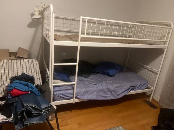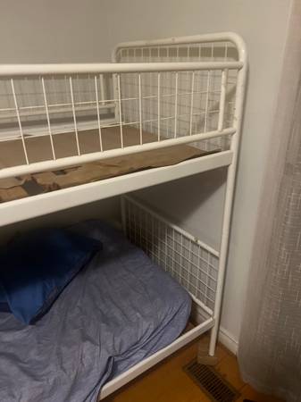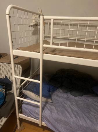 Ikea Bunk Bed metal frame with wooden plank. Twin size. We already took it down for easy transport search m4k3p3 for my other ads. might be able to deliver for a fee or if on the way.